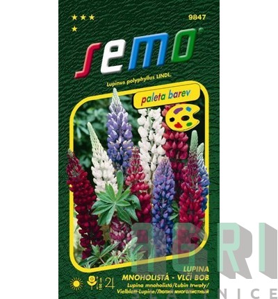 Lupina mnoholistá (Vlčí bob) Lupinus polyphyllus LINDL. / Lupina mnoholistá SMĚS BAREV Klasické „venkovské“ vlčí boby ve třech čistých barvách bílé, červené a modré. Semena ve směsi jsou barevně odlišená, jejich barva odpovídá barvě květu rostlin. Semena před výsevem namočte přes noc do studené vody. Výška 100 cm. Na záhonu spolehlivě vysemeňuje.