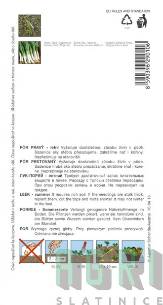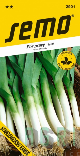 Pór pravý Allium porum / Pór pestovaný STAROZAGORSKI KAMUŠ Letní pór pro sklizeň od srpna do října. Vyniká dlouhým vyběleným stvolem až 50 cm. Vegetační doba od výsevu je 170 - 180 dní.